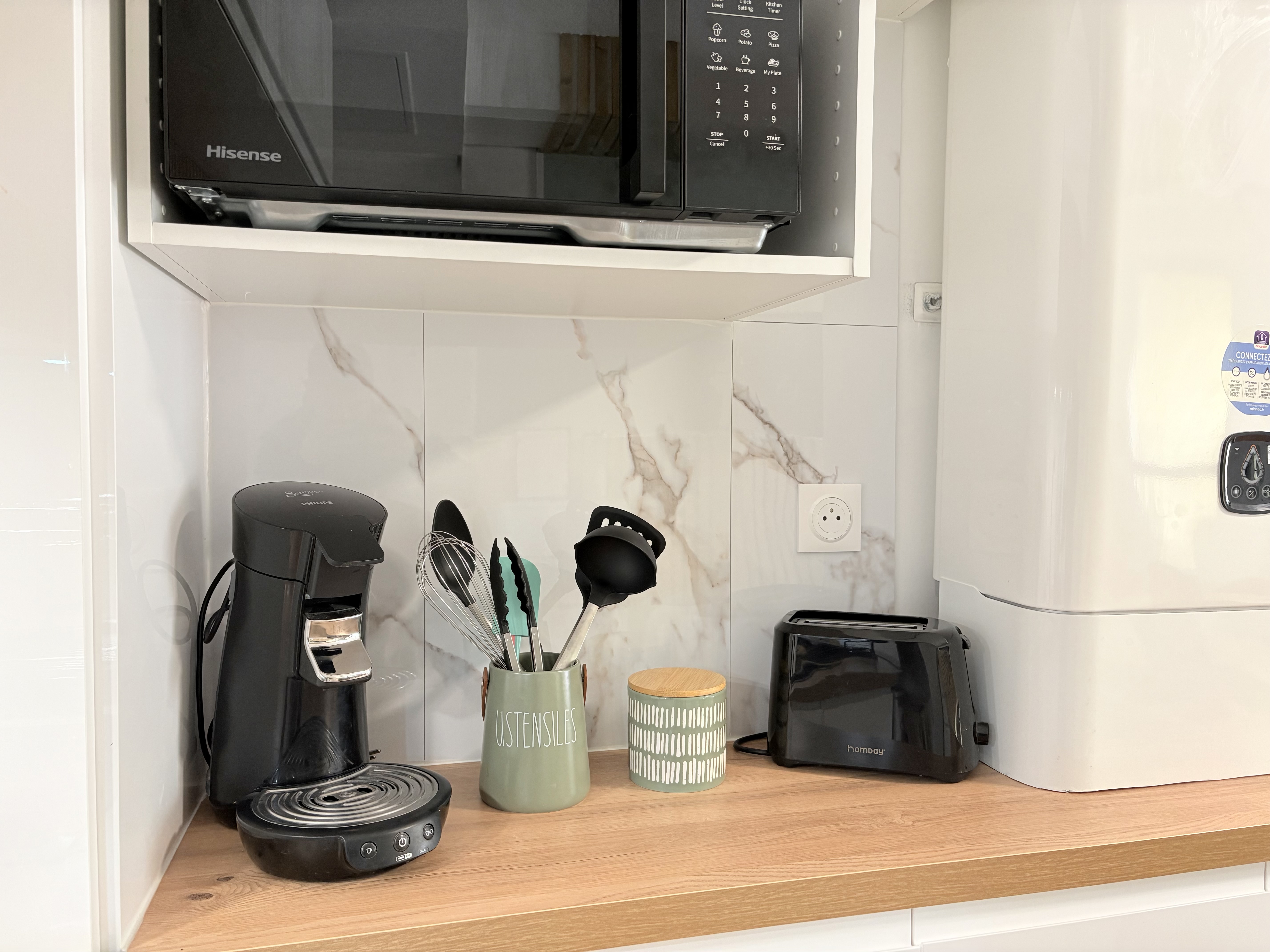 Un intérieur moderne et apaisantDès l’entrée, la lumière naturelle et les teintes douces invitent à la détente.Le salon, élégant et convivial, dispose d’un canapé confortable et d’une TV.La cuisine équipée (plaques, micro-ondes, cafetière, bouilloire, grille-pain, appareil à raclette...) vous permettra de partager des moments gourmands après une journée de ski ou de randonnée.La chambre, à l’ambiance cosy et feutrée, est pensée pour des nuits paisibles avec son lit double et sa literie de qualité.La salle de bain, moderne et raffinée, est équipée d’une douche à l’italienne, d’un vasque design et d’une machine à laver.